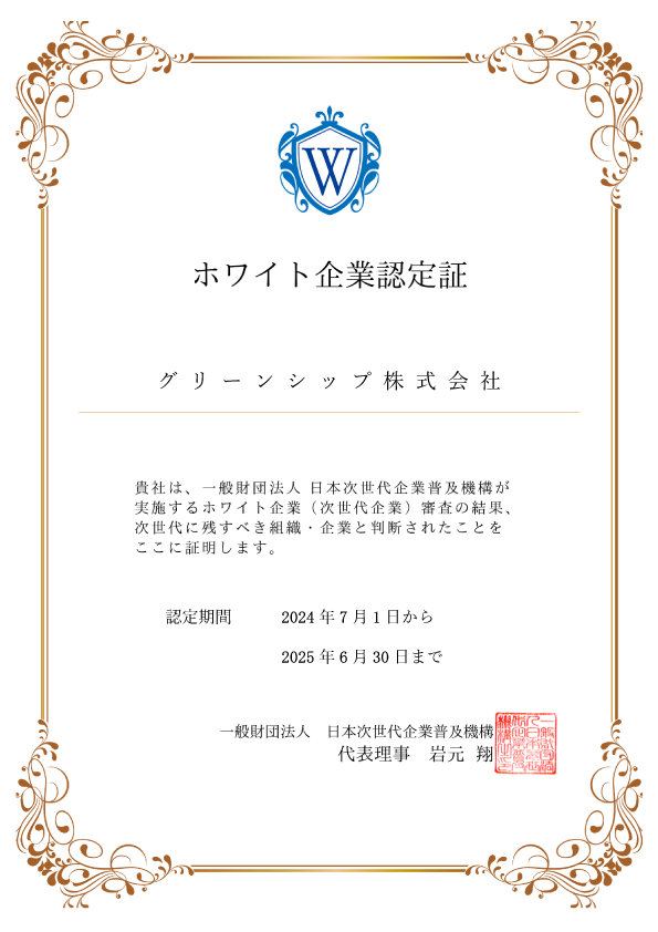 一般財団法人日本次世代企業普及機構(ホワイト企業財団)が運用する「ホワイト企業認定」において